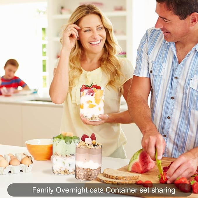 - Trying to Meal Prep Smarter? You get a set of 4 reusable overnight oats containers, so prepping your weekly breakfasts or snacks is a breeze. Mix and match flavors, stack them in your fridge, and enjoy stress-free mornings. These are the ultimate glass parfait cups with lids for smart, tasty meal prep.