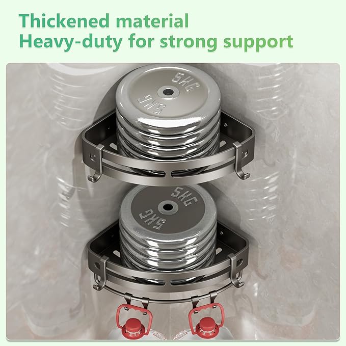 - Sturdy Design for 40 LBS:Corner shower shelf Strong adhesive is used Provides a strong load-bearing capacity,bathroom storage shelf no drilling can be installed quickly,can carry 7 bottles of 557ml water without dropping. Easy to install and remove without damaging walls or leaving traces