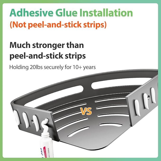 - Easy Installation:corner shower shelf No Drilling,Will not damage the wall. Note: Please make sure the angle of the installation corner is 92 degrees! Do not stick the adhesive on painted walls or wallpaper as it will peel off your paint or wallpaper!