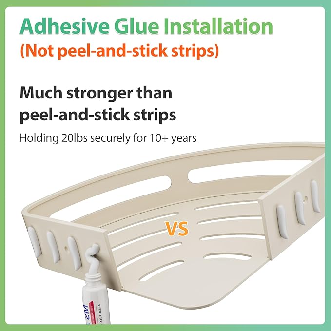 - Easy Installation:corner shower shelf No Drilling,Will not damage the wall. Note: Please make sure the angle of the installation corner is 91 degrees! Do not stick the adhesive on painted walls or wallpaper as it will peel off your paint or wallpaper!