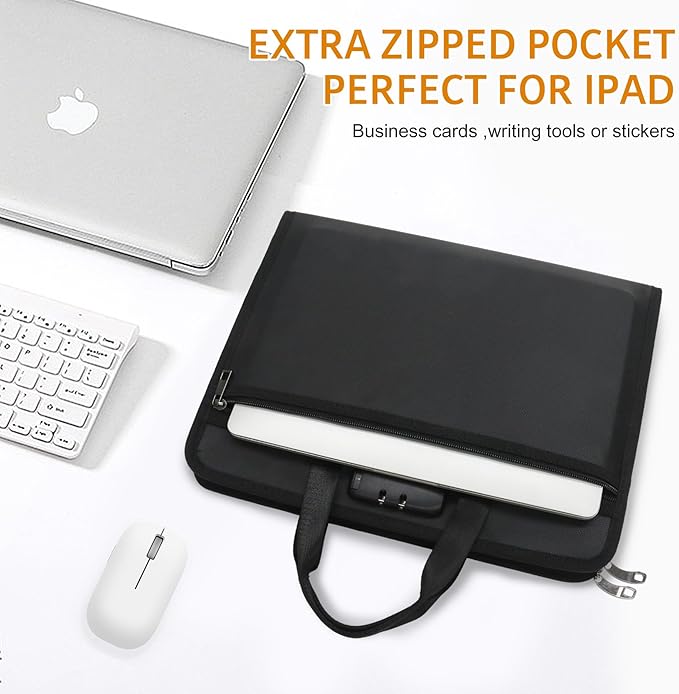 - Secure Password Protection – This multi-layer portable fireproof accordion file organizer features a password lock for enhanced document security, along with a convenient side zippered pocket for extra storage
