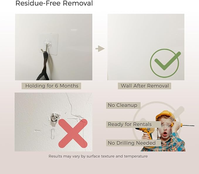 - Smart Adhesive Tech for Renters Grips strong during use, peels off clean at room temp like a Post-It note. → No wall damage when you follow instructions.