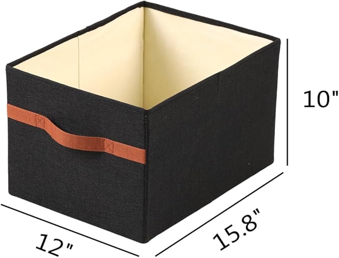 ALYER Collapsible Fabric Storage Organizer with Handles,Shelf Bins Box Container for Bedroom Office Closet Babies Nursery Toys Books Clothes (Black, 15.8" x 12" x 10")