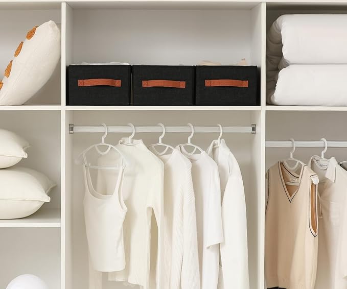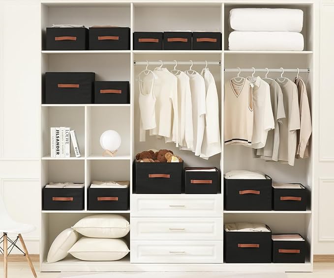 ALYER Collapsible Fabric Storage Organizer with Handles,Shelf Bins Box Container for Bedroom Office Closet Babies Nursery Toys Books Clothes (Black, 16.2" x 9.5" x 6.7")
