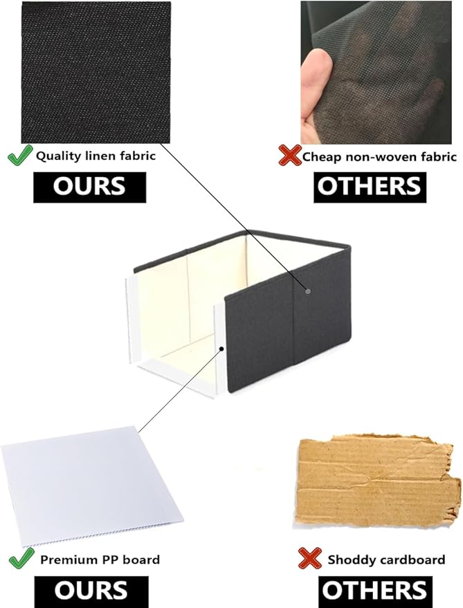 - This storage box is made of linen type cloth and premium plastic board,durable and breathable.