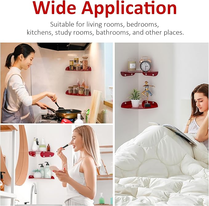 - Wide Application: The wall mounting corner shelf can be used as a bathroom organizer, skincare organizer, perfume organizer, spice organzier, toiletries organizer. It can be used for any wall corner for storage. The bathroom, kitchen, bedroom, living room, study room, dining room or office. You can also use it for security cameras, smart speacker, figures, toys, books, etc. Truly multifunction.