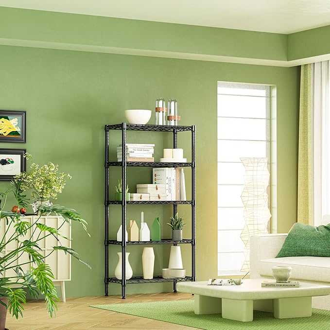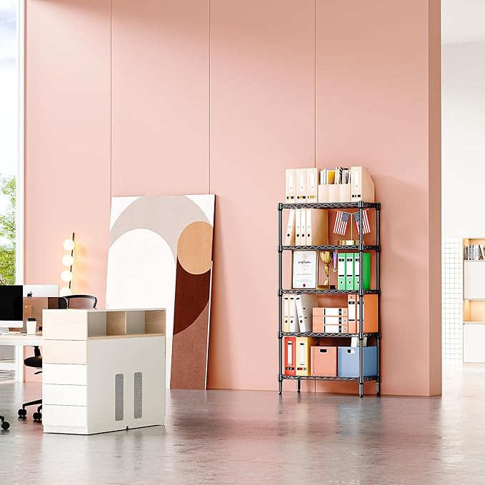 IZEUK 5-Tier Black Metal Storage Shelves, Heavy Duty Wire Shelving Unit for Home, Kitchen, Office, or Garage Organization, 1250 lbs Capacity, 13.8" D x 29.5" W x 59.5" H