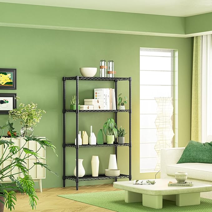 IZEUK 4 Tier Black Metal Storage Shelves, Heavy Duty Wire Shelving Rack for Garage, Kitchen, Bathroom, or Laundry Organization, 1000 lbs Capacity, 13.8" D x 35.4" W x 59.5" H