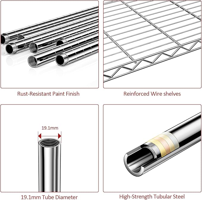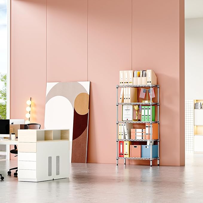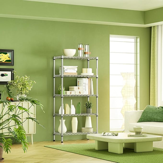 IZEUK 5-Tier Chrome Metal Storage Shelves, Heavy Duty Wire Shelving Unit for Kitchen, Office, Garage, or Home Organization, 1250 lbs Capacity, 13.8" D x 29.5" W x 59.5" H