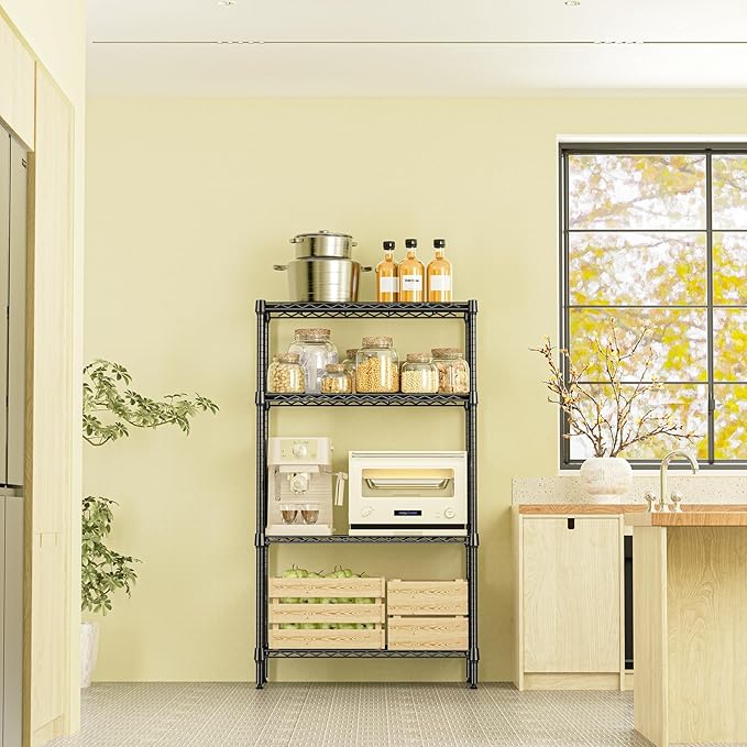 IZEUK 4-Tier Black Metal Storage Shelves, Heavy Duty Adjustable Wire Shelving Rack for Garage, Kitchen, Bathroom, Closet Organizer, 1000 lbs Capacity, 15.7" D x 33.5" W x 59.5" H