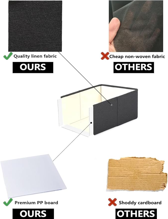 - This storage box is made of linen type cloth and premium plastic board,durable and breathable.
