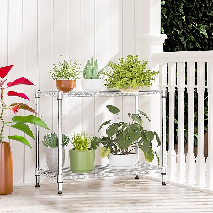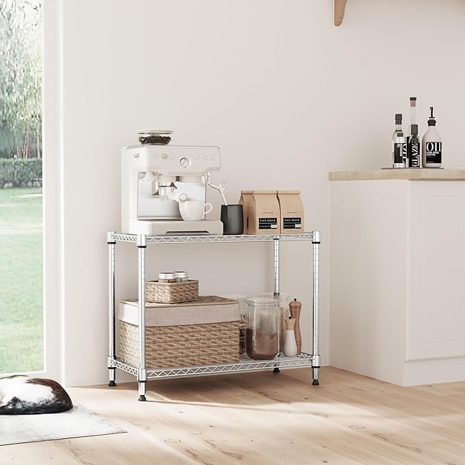 IZEUK 2 Tier Adjustable Metal Storage Shelving Unit, Heavy Duty Wire Rack Organizer for Kitchen, Living Room or Office, 220 lbs Capacity, 27.6 W x 11.8 D x 23.4 H, Chrome