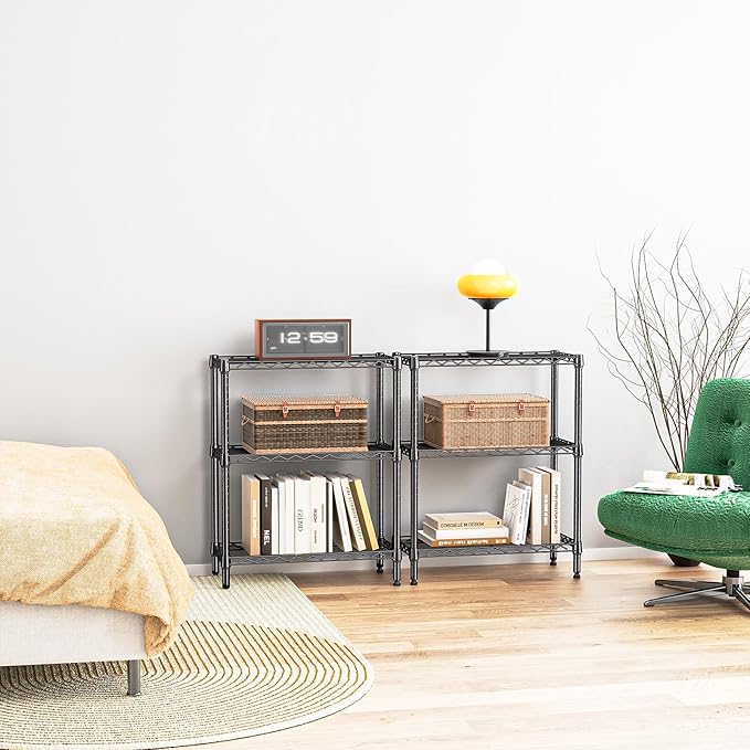 IZEUK 3 Tier Heavy Duty Steel Storage Shelves, Metal Shelf Wire Shelving Rack for Pantry, Kitchen, Cloakroom or Office Organization (13.8" D x 23.6" W x 35.5" H, 750LBS, Black)