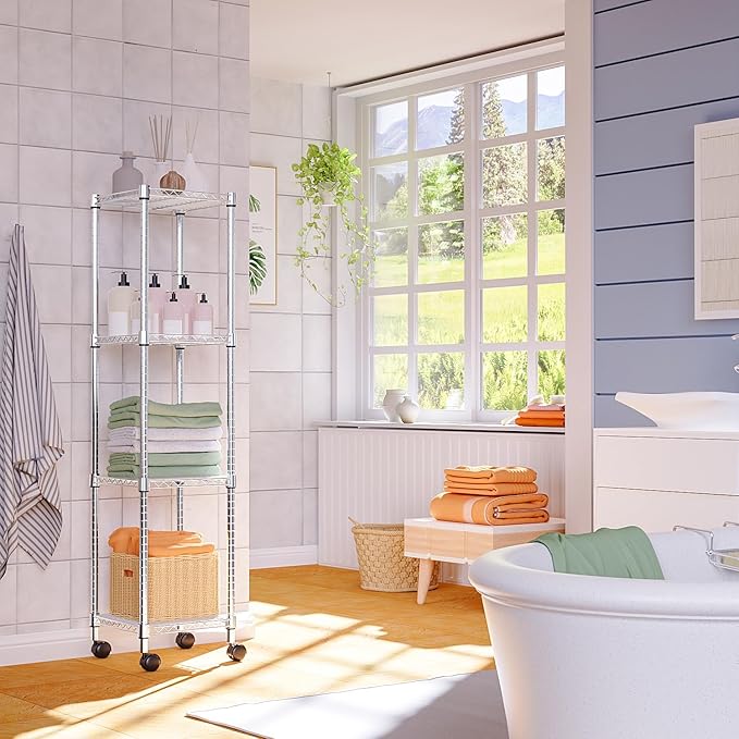 IZEUK 4 Tier Steel Storage Shelves, Adjustable Wire Shelving Unit for Kitchen, Bathroom, or Office Organization, Heavy Duty Metal Rack, 11.8" D x 11.8" W x 48.1" H, Chrome