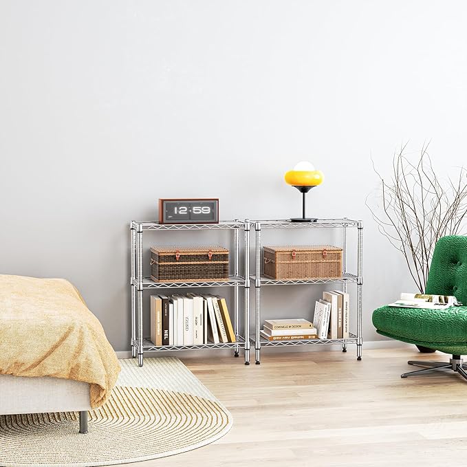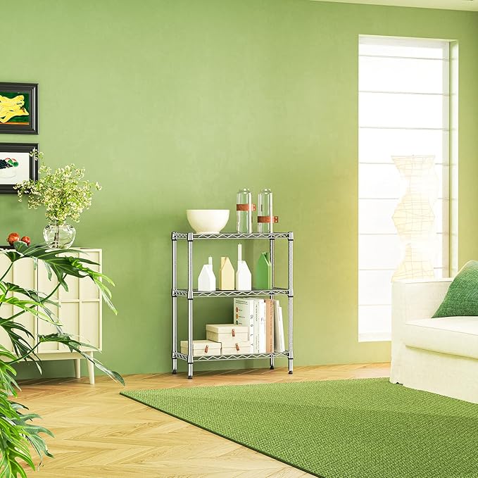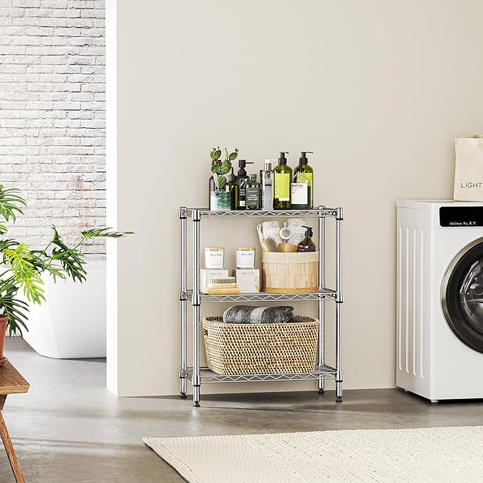 IZEUK 3 Tier Heavy Duty Steel Storage Shelves, Metal Shelf Wire Shelving Rack for Pantry, Kitchen, Cloakroom or Office Organization (11.8" D x 25.6" W x 31.5" H, 750LBS, Chrome)