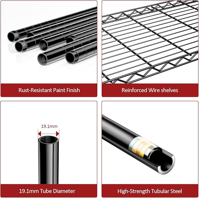 - 【Rust & Dirt Resistant】This IZEUK 4 tier shelf is built with a powder-coated surface that resists rust and dirt, ensuring long-term durability. Ideal as a wire shelving rack or skinny shelf for kitchen, pantry, or garage organization.
