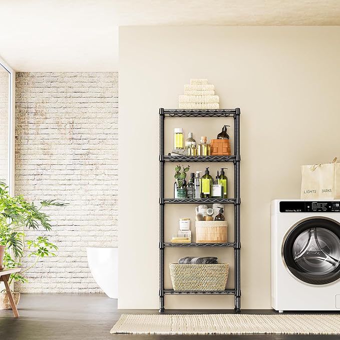 IZEUK 5 Tier Steel Storage Shelves, Heavy Duty Metal Shelf Wire Shelving Rack for Pantry, Kitchen, Living Room, or Office Organization (11.8" D x 23.6" W x 59.5" H, 1250LBS, Black)