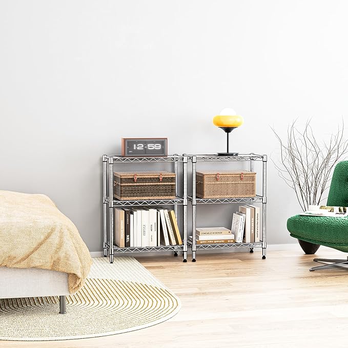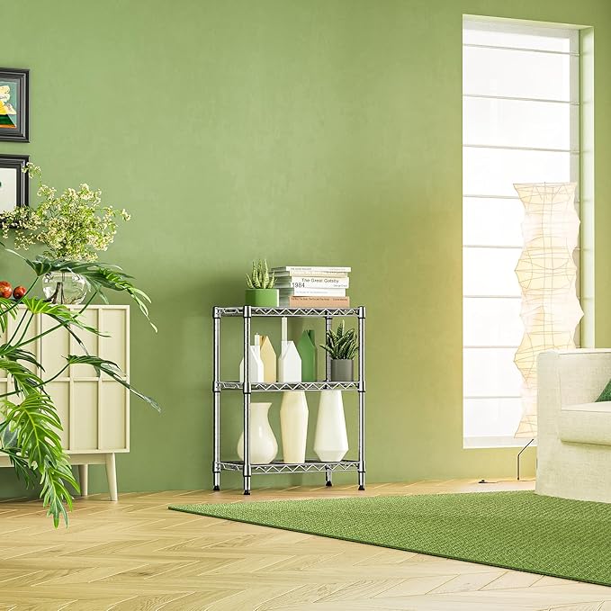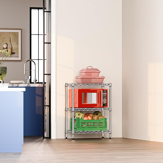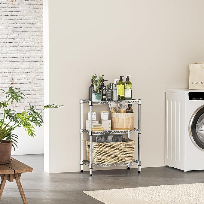 IZEUK 3-Tier Steel Storage Shelves, Heavy Duty Metal Shelf Wire Shelving Rack for Pantry, Kitchen, Living Room, or Office Organization (21.7" W x 11.8" D x 28.6" H, 750LBS, Chrome)