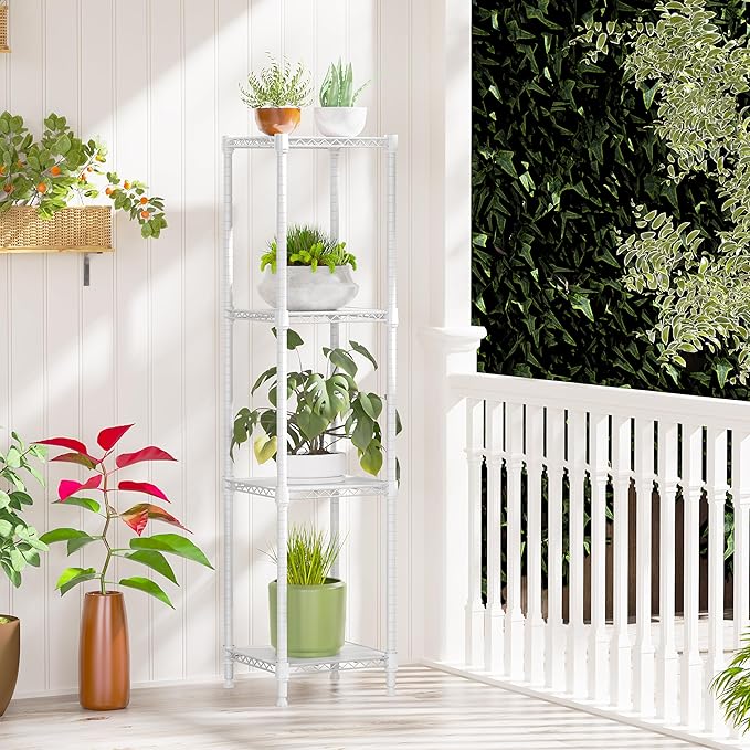 IZEUK 4 Tier Steel Storage Shelves, Adjustable Wire Shelving Unit for Kitchen, Bathroom, or Office Organization, Heavy Duty Metal Rack, 480 lbs Capacity, 11.8" D x 11.8" W x 47.3" H, White