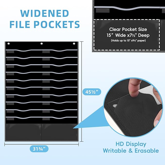 - 【Fits All Document Sizes】Each storage pocket is designed with a 15-inch widened design, which perfectly stores Legal, A4, Letter size paper and manila file folders, avoiding document curling.Each deep pockets can effectively organize office contracts, magazines, letters, emails, home bills, kids' homework, stationery and toys, and other small items. Keep each type of items organized with dedicated space.