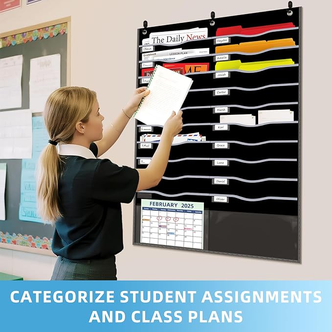 - 【Clear & Writable Pockets】The bottom clear pockets support repeated writing with a whiteboard marker, making it easy to keep track of to-do lists, calendar, class schedules, or shopping lists, which can be erased and updated. Teachers can use it to display classroom rules, parents can use it as a family schedule center, and office workers can display calendars or to-do lists.