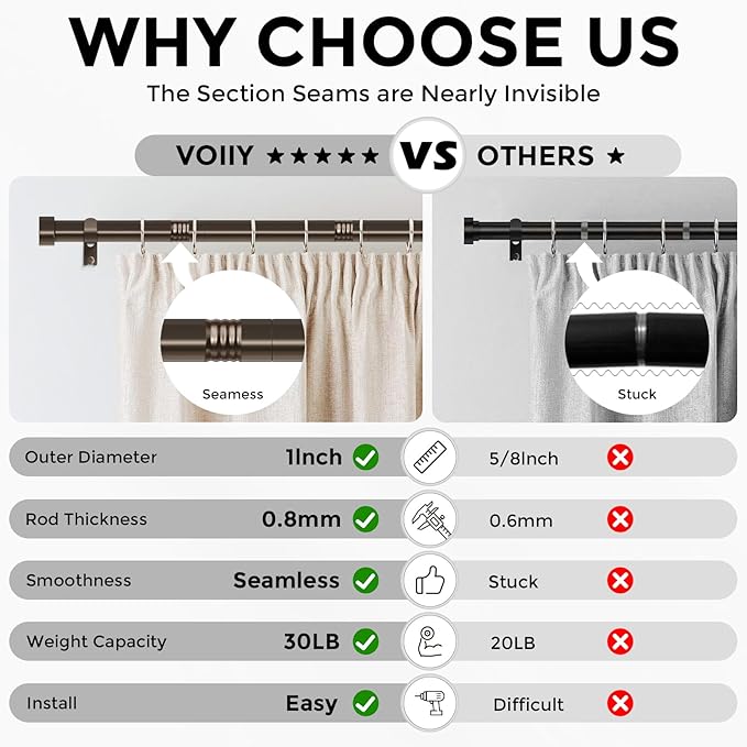- 【ARFTERMARKET WARRANTY】VOIIY curtain rods all come with a three-year warranty for our customers, and if you contact us, all issues will be resolved within 24 hours
