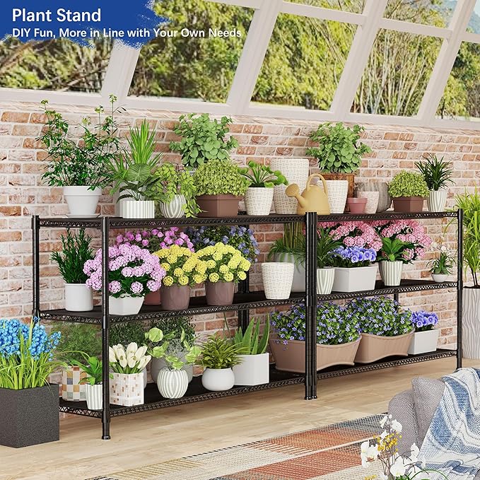- 🏡 【Rust-Resistant Coating for Multiple Scenarios】The anti-rust painted surface and durable carbon steel frame make it suitable for both dry garages and humid environments like kitchens or greenhouses. It's not just a home shelf but also a reliable solution for small factories and commercial storage.