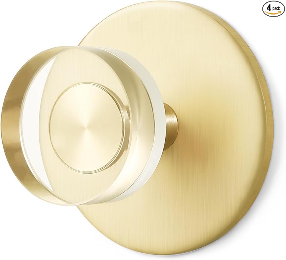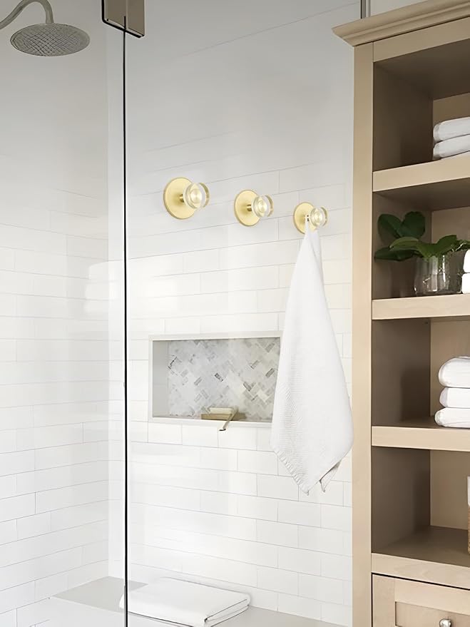 4 Pack Adhesive Crystal Towel Hooks for Bathrooms Gold Wall Hooks for Hanging Robe Coat Hooks Kitchen Decorative Heavy Duty Zinc Alloy