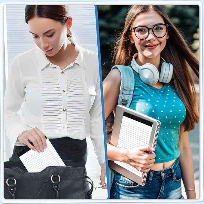 - 【80GSM Paper】The college ruled legal pads are made of 80gsm thick paper, double-sided printing, no ink penetration and ghosting, providing a smooth writing experience. Suitable for many types of pens, such as ballpoint pens, fountain pens, pencils, gel pens, etc.