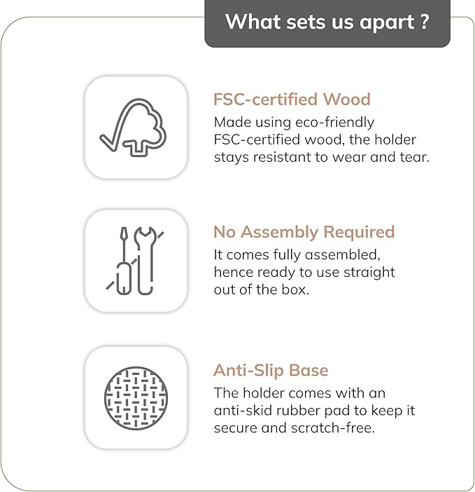 - MADE FROM FSC-CERTIFIED 100% NATURAL WOOD: Each paper towel holder is handcrafted from 100% FSC-certified solid wood, ensuring durability and a unique natural finish. Responsibly sourced for an eco-friendly touch to your kitchen decor.