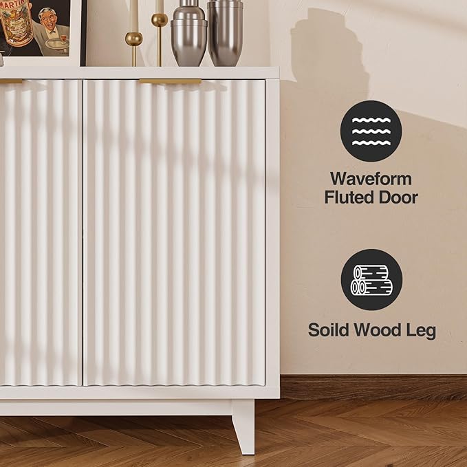- Elegant Fluted Design: This coffee bar cabinet features a unique waveform fluted panel, brings visual interest while reflecting texture and elegance. Pair it with metal handles for a premium look. The minimalist and distinctive buffet cabinet is a great decoration for any room in your home. It's a good choice whether you are looking for a modern style or a natural traditional style