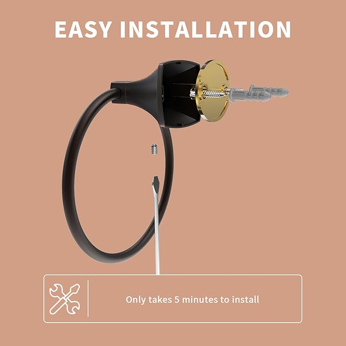- 180° Rotating Towel Ring: Rotating towel rings for bathroom wall allows effortless access from any angle while enabling one-handed operation, whether grabbing a hand towel or hanging bath sheets. No more awkward stretching or repositioning