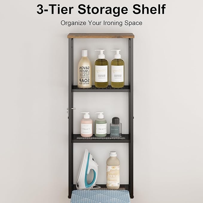 - Spacious 3-Tier Storage: Designed with a practical 3-tier storage rack, this ironing boards provide not only a space for your clothes but also ample room to store your iron, accessories, and other household essentials. Keep everything neatly organized and within arm’s reach for a hassle-free ironing experience