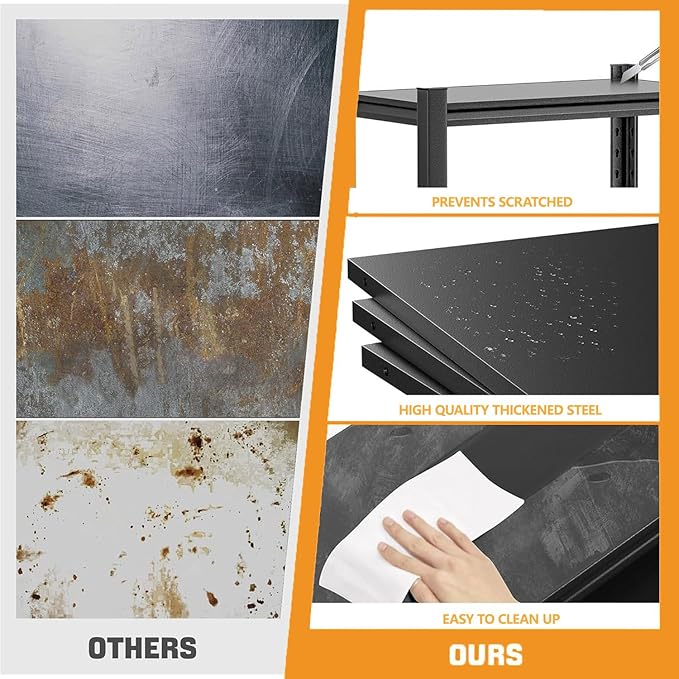 - 【All-Steel Reinforced Structure, Strong Load-Bearing And Anti-Deformation】Unlike ordinary shelves that are prone to moisture deformation and insufficient load-bearing, this garage shelving is made entirely of steel, with a total load-bearing capacity of more than 1500 pounds, and the thickened steel plate and double-layer column process ensures that there is no bending or collapsing when you are storing heavy tools, oil drums, or auto parts for a long period of time. Say goodbye to the trouble of moisture absorption and cracking of wooden shelves