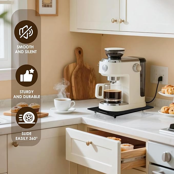 - 360°Silent Mobility: The BEZONO sliding tray features 360°rotation and silent rubber wheels, providing easy access to and organization of frequently used appliances. Easily slide out your coffee maker or air fryer from under cabinets for refilling or use, while protecting your countertops from steam damage