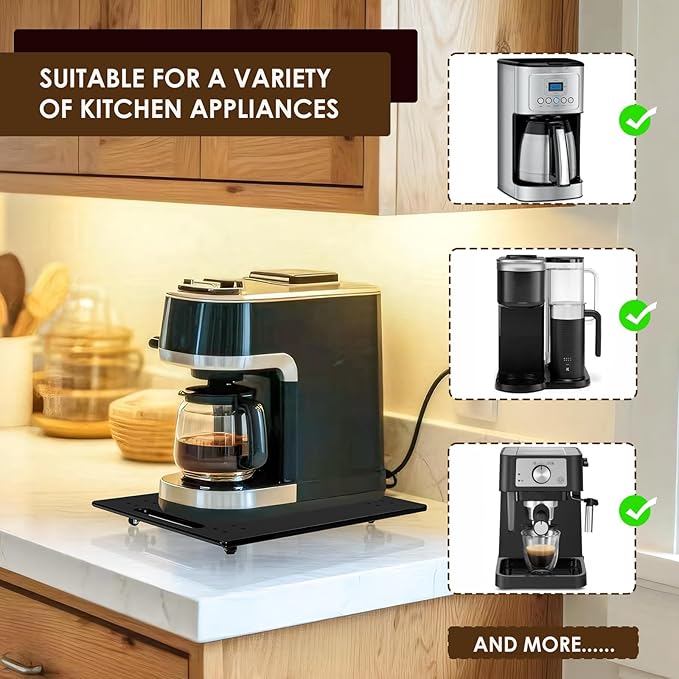 - Functional & Elegant: Upgrade your sliding tray for kitchen appliance, which combines an easy-to-clean, durable, and fashionable modern design. Its smooth surface resists coffee stains and watermarks, requiring only a quick wipe to maintain its pristine appearance between uses