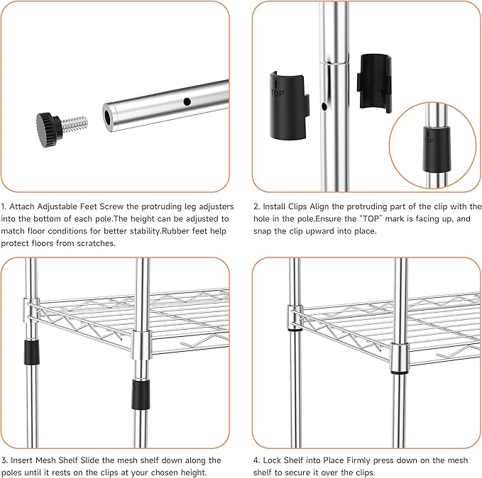 - Open Wire Shelves: The breathable structure helps reduce moisture and keeps stored items visible and accessible.