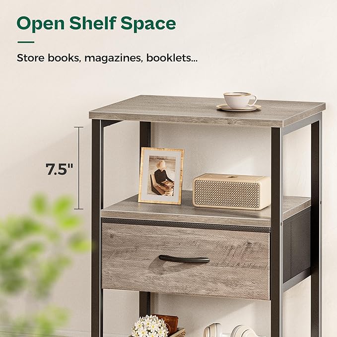 - 【Night Stand Set of 2】Our bed side table comes with a fabric drawer, desktop, and a mesh shelf that offers ample storage space. Stow away books, electronics, or bedtime essentials, this couch side table has got you covered