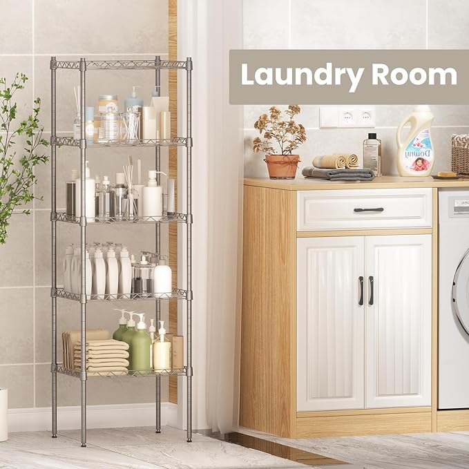 5 Tier Shelves, 16.9"x 13"x 53.9" Utility Rack Shelf, Metal Storage Shelving, Adjustable Wire Shelving Units, Heavy Duty Storage Organizer for Garage Laundry Office, Silver