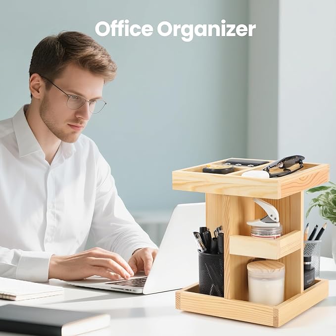 360 Rotating Wood Rotating Countertop Organizer,Mens Cologne Organizer,Mens Bathroom Organizer,Perfume Tray,Cologne Stand,Vanity Tray,Counter Shelf,Countertop Shelf(Burlywood)