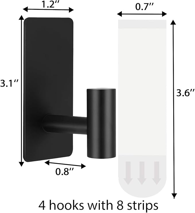 - Superior Loading Capacity:Equipped with 4 Large heavy-duty SUS-304 stainless steel hooks with 8 strips, capable of supporting up to 4 lbs
