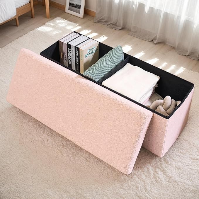 43 Inches Storage Ottoman Bench - Extra Large Foldable Ottoman with Storage, Bench for Living Room, Bedroom, Entryway - Pink