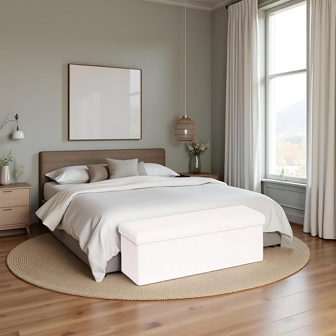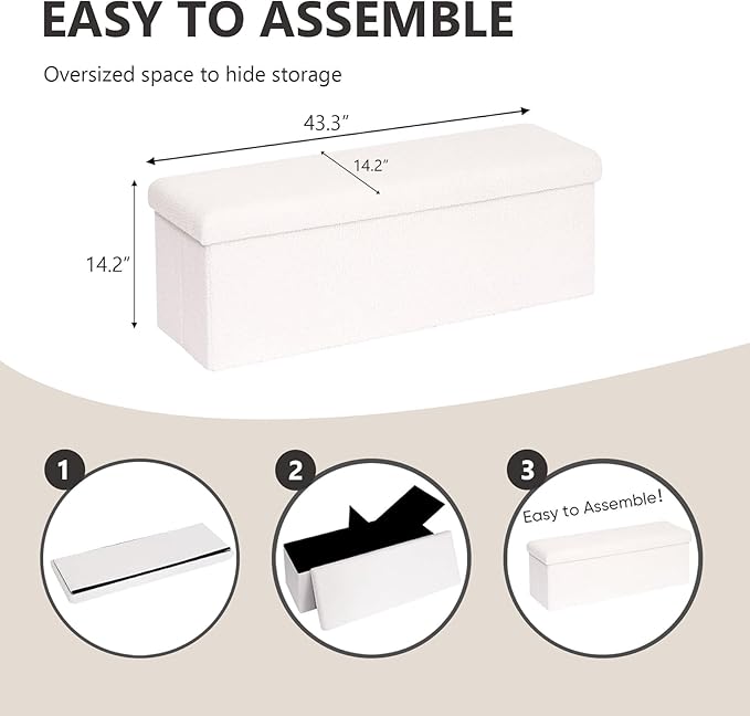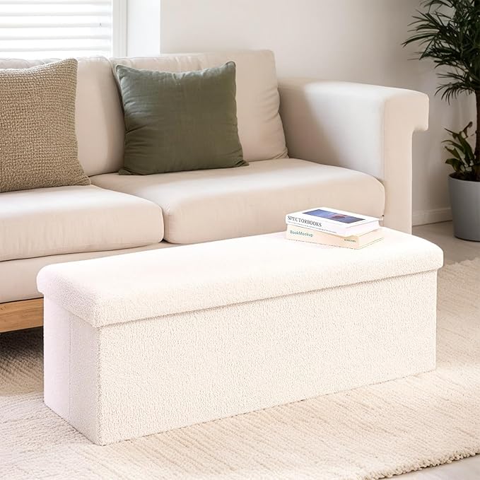 43 Inches Storage Ottoman Bench - Extra Large Foldable Ottoman with Storage, Bench for Living Room, Bedroom, Entryway - White
