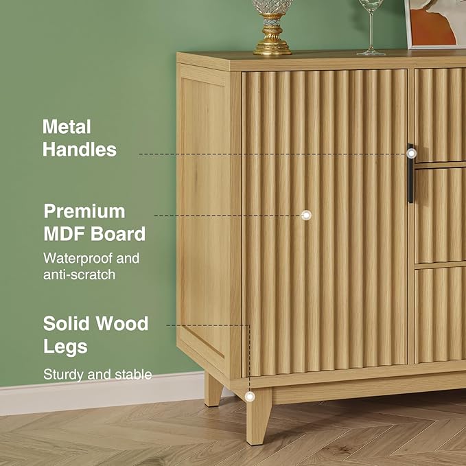 - Elegant Fluted Design: This storage cabinet features a unique waveform fluted panel, brings visual interest while reflecting texture and elegance. Pair it with black metal handles for a premium look. The minimalist and distinctive buffet cabinet is a great decoration for any room in your home. It's a good choice whether you are looking for a modern style or a natural traditional style