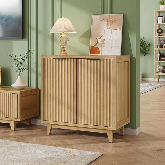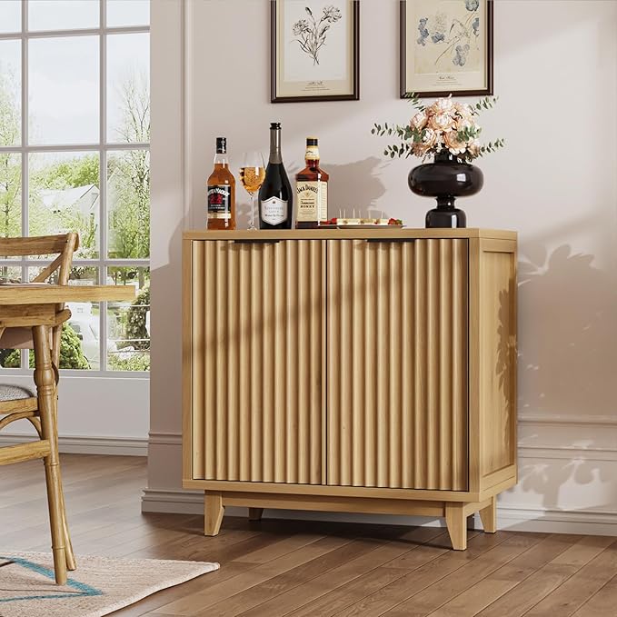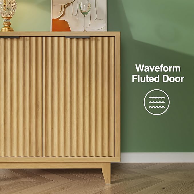 - Elegant Fluted Design: This storage cabinet features a unique waveform fluted panel, brings visual interest while reflecting texture and elegance. Pair it with black metal handles for a premium look. The minimalist and distinctive buffet cabinet is a great decoration for any room in your home. It's a good choice whether you are looking for a modern style or a natural traditional style