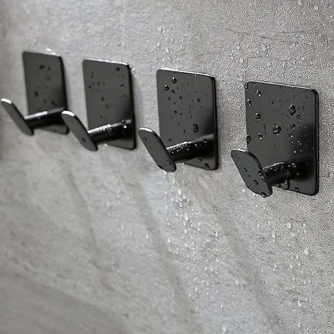 Adhesive Hook, 4-Piece Set of Matte Black Stainless Steel, Heavy-Duty Jacket and Towel Hook Wall Hook, Attached to Bathroom, Kitchen, Toilet, RV Wall Decoration
