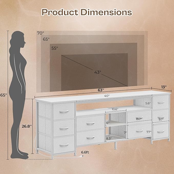- 【TV Stand for 70 Inch TV】At 63 inches long, this TV console with storage is built to impress. Whether you’re watching movies with family or gaming solo, it’s the ideal platform for your 65, 70 inch screen. Finally a stand that actually fits big TV, and still leaves room for a soundbar and speakers