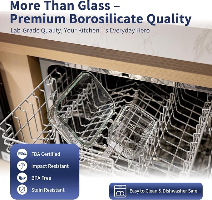 - PREMIUM BOROSILICATE GLASS:Our glass storage containers are made from premium borosilicate glass, which is stronger than others' glass food storage containers, safely go straight from the refrigerator to the microwave or oven to the table