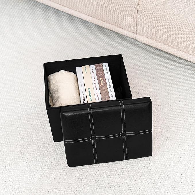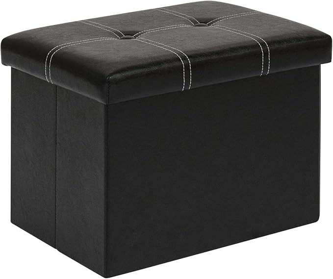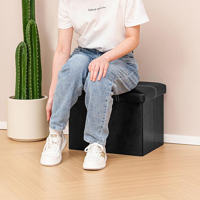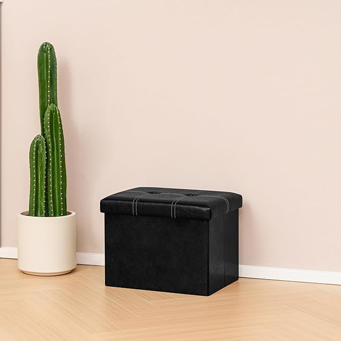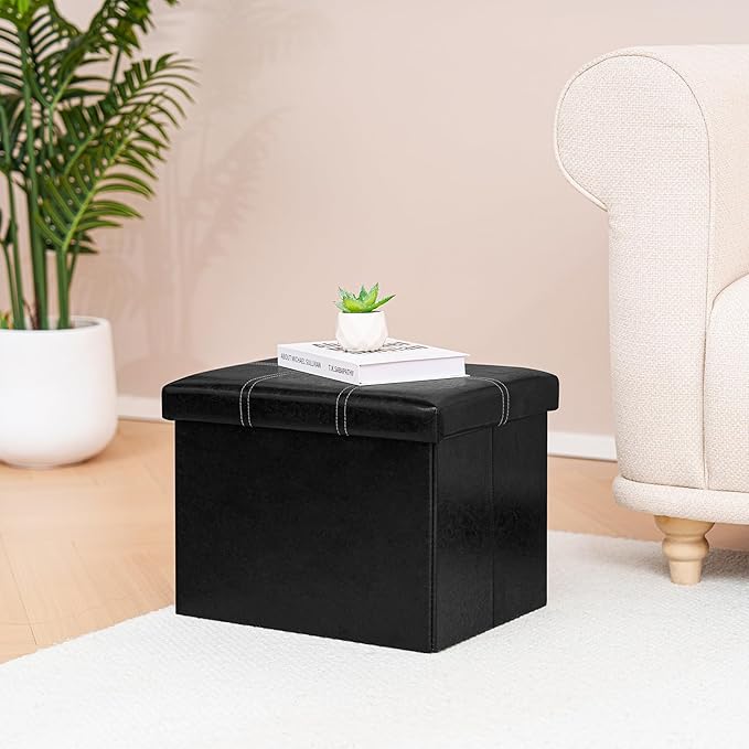 B FSOBEIIALEO Folding Storage Ottoman, Faux Leather Footrest Seat Coffee Table Toy Chest Kids, Black 16.5"x12.6"x12.6"