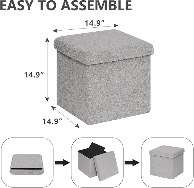Folding Storage Ottoman Cube - Small Footrest with Sherpa Top, Multi-Functional Storage for Bedroom, Living Room-Grey